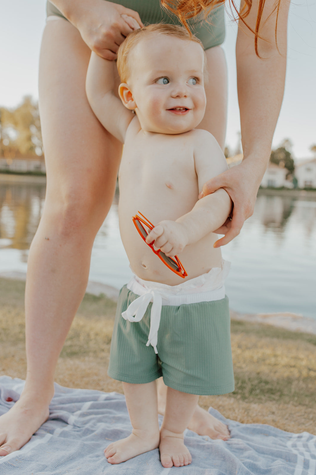 Bella Donaldson I ordered a size up so my little can wear for two years if not more, love the working drawstring and the ribbed material. I got the matching one piece and I can’t wait to match with my little!