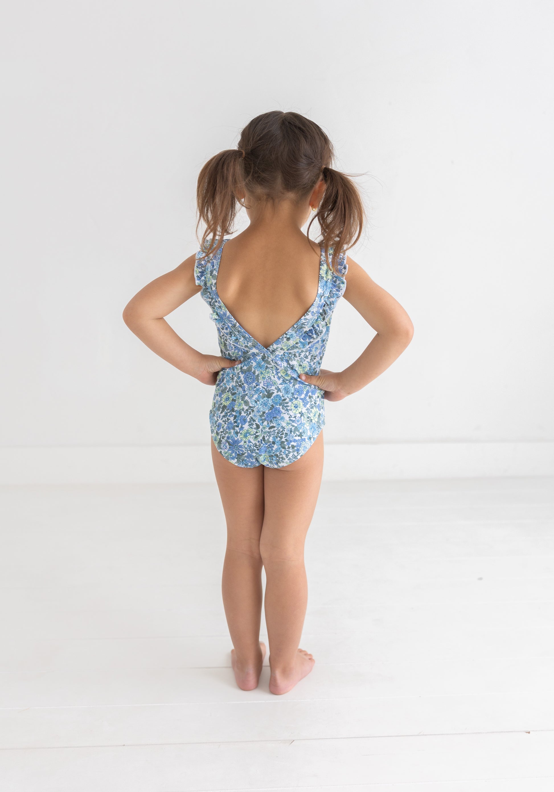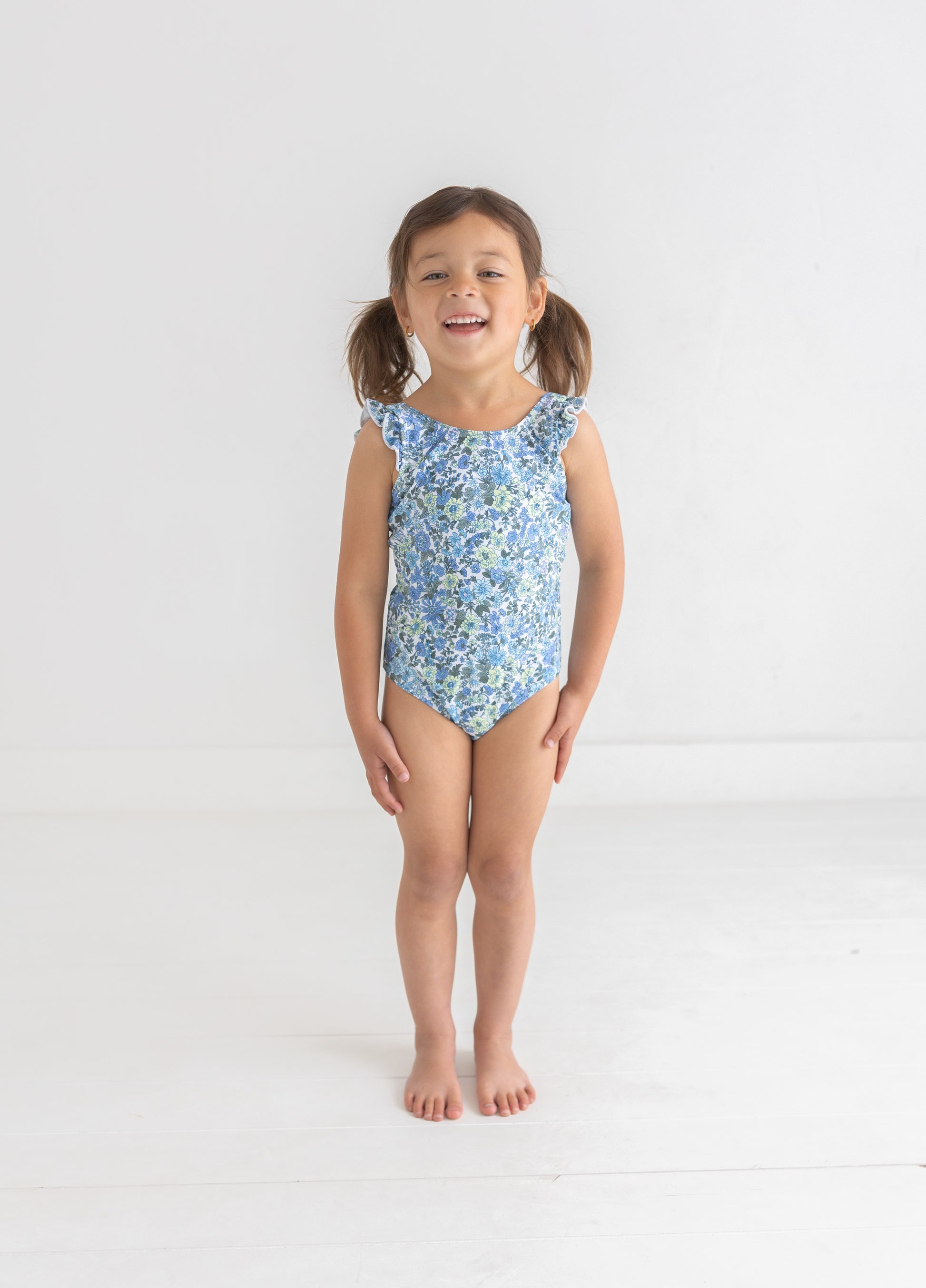 This adorable children's one-piece swimsuit is perfect for fun in the sun! Featuring a stylish tank design with a playful ruffle detail around the shoulders, it combines comfort and style. Made with a high-quality fabric that offers UPF 50+ protection, this swimsuit helps keep your little one safe from harmful sun rays while they splash and play. Ideal for beach days, pool parties, or swimming lessons, it's the perfect blend of fashion and function for your child’s summer wardrobe.